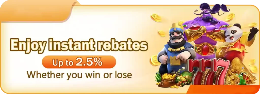 Play at BAGO LIVE casino Philippines and get instant rebates up to 2.5%! Whether you win or lose on real-time slot games Philippines or fishing games, enjoy continuous rewards. Maximize your gameplay with BAGO LIVE casino promotions and bonuses, making every spin and bet more exciting and rewarding!